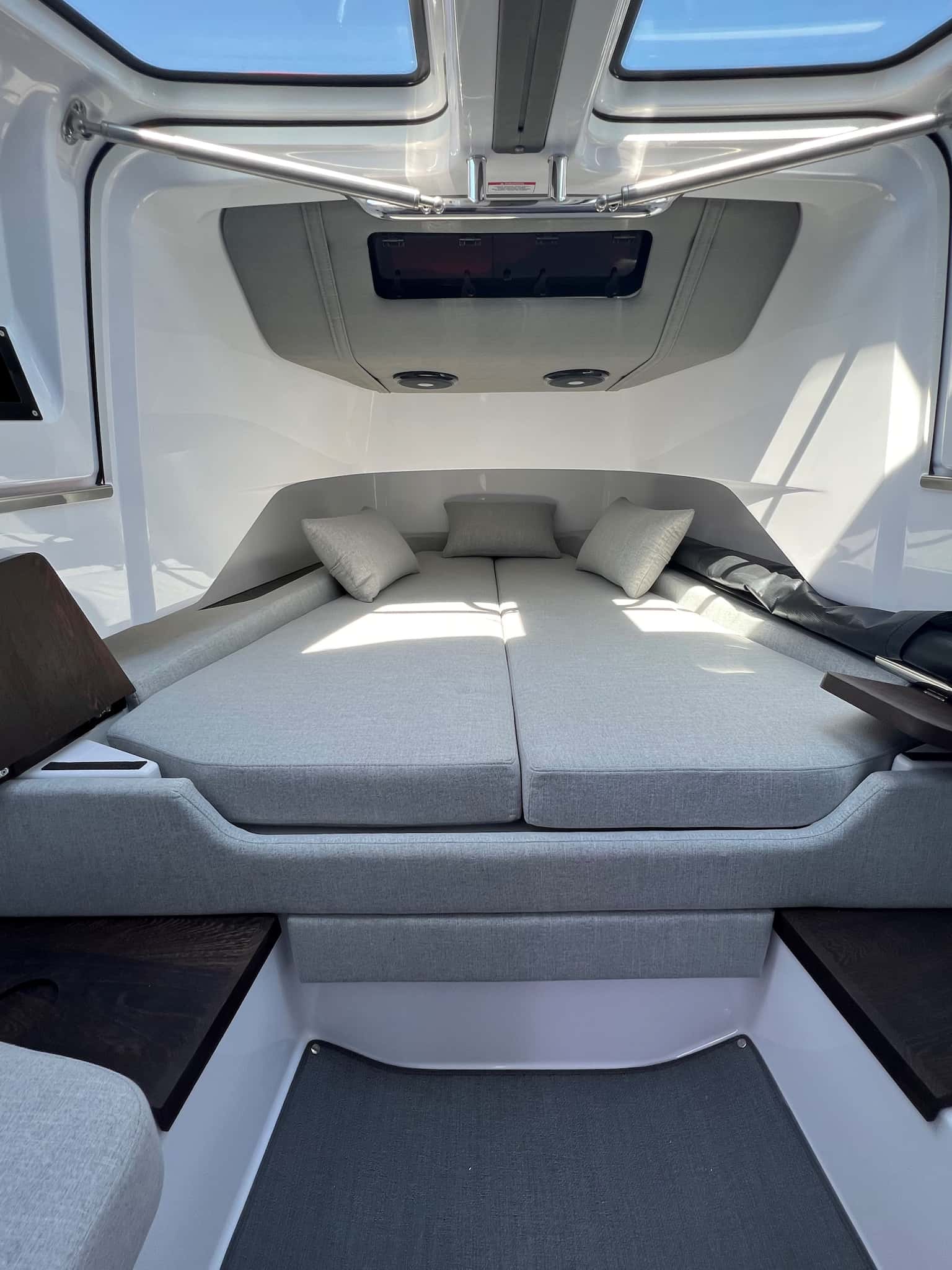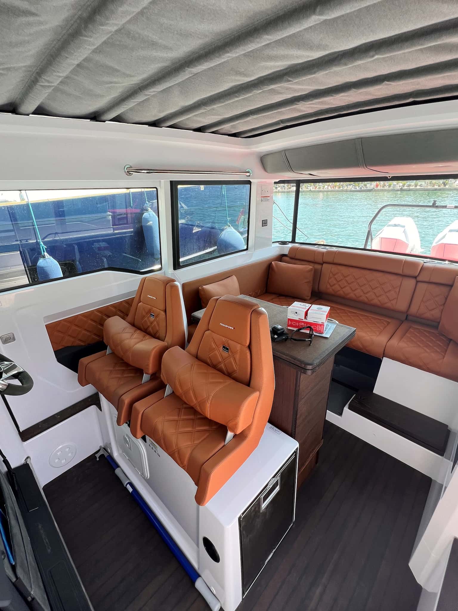 This model combines the functionality, ease of movement, social outdoor and indoor spaces and versatility of outboard walkaround centre-consoles with a spacious, fully enclosed weather proofed cabin, that with distinctive looks challenges traditional perceptions of cabin boats.