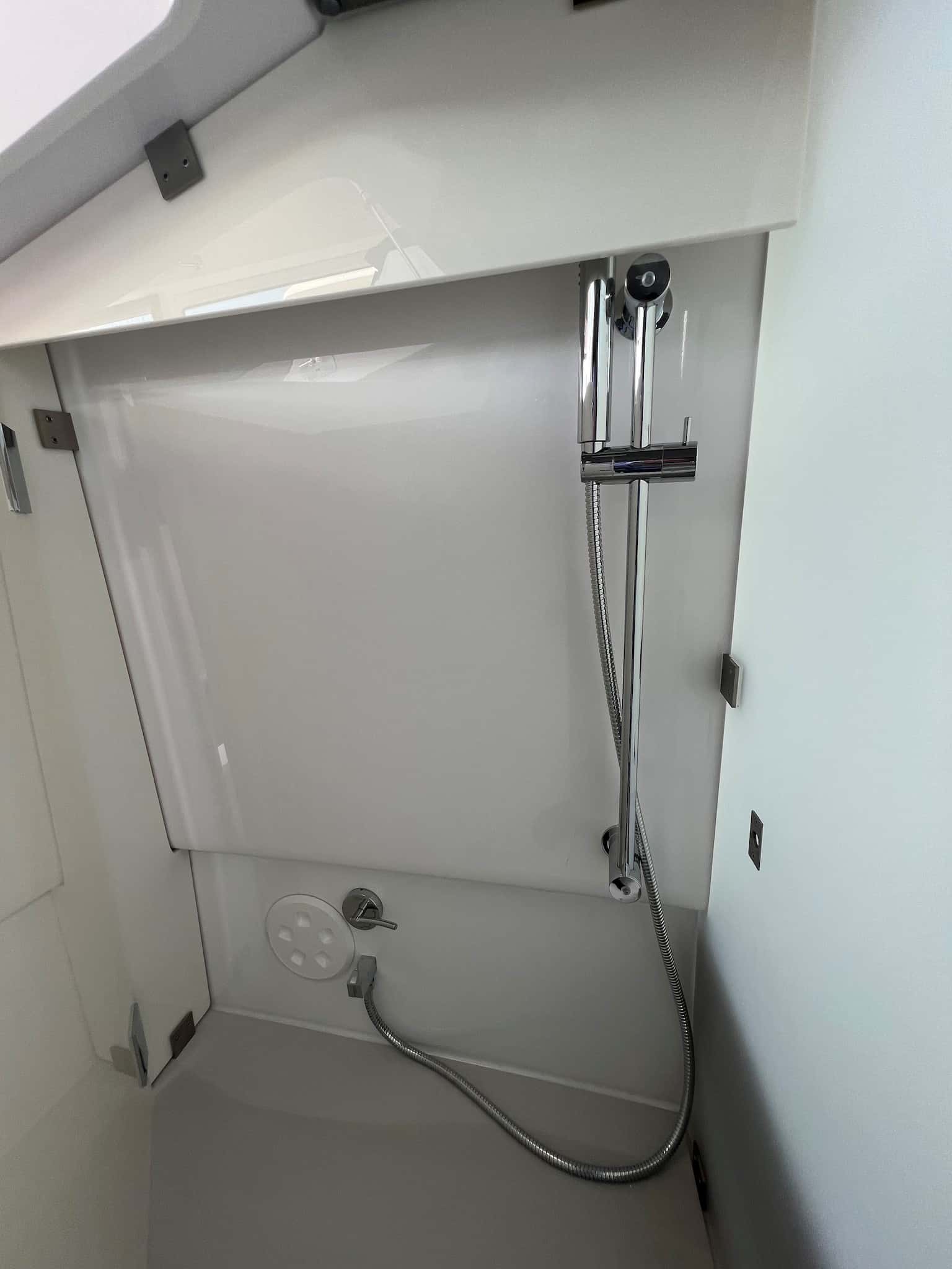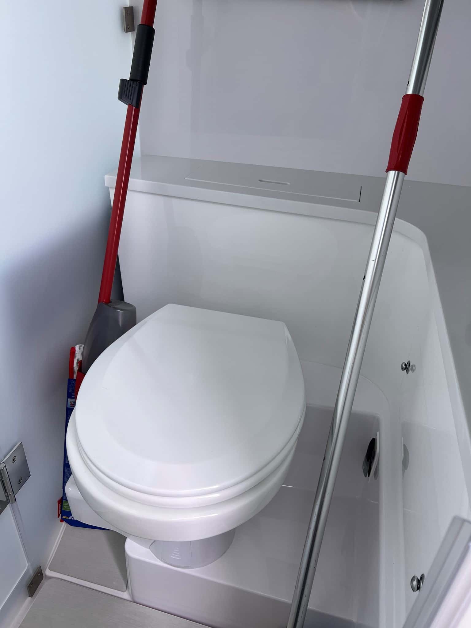 - Built-in electric flush toilet under L-sofa w. septic tank 70l and deck/hull outlets