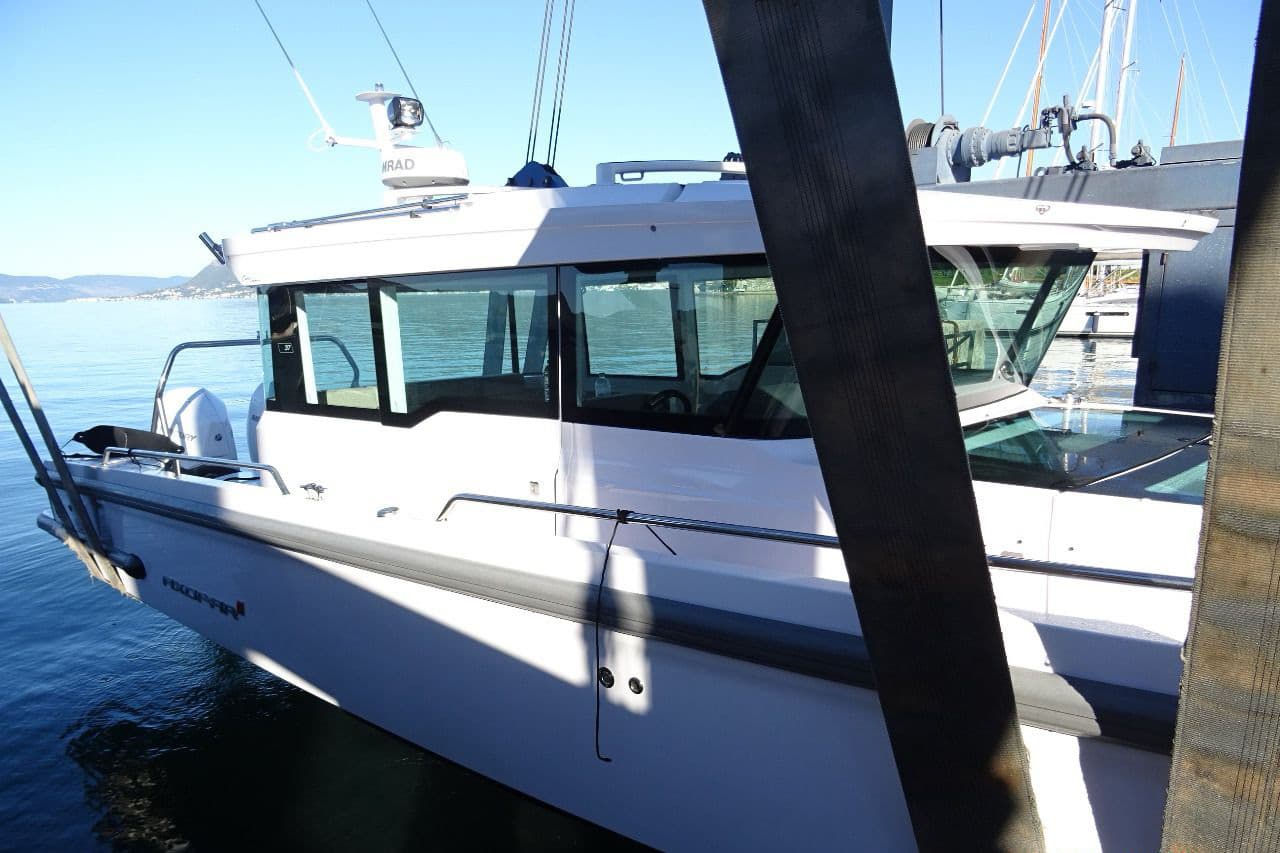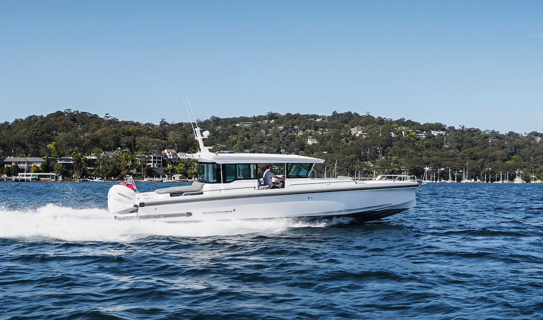 This model combines the functionality, ease of movement, social outdoor and indoor spaces and versatility of outboard walkaround centre-consoles with a spacious, fully enclosed weather proofed cabin, that with distinctive looks challenges traditional perceptions of cabin boats.