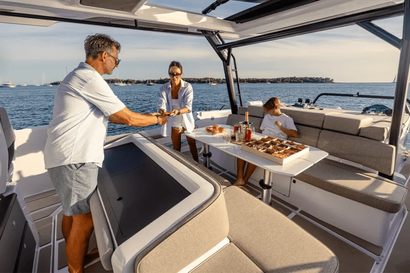 The modular layout allows for easy customization and versatility of space for this type of boat, accommodating various activities and preferences. From casual day trips to longer journeys, the Sun Top and Cross Top offer the flexibility to adapt to all kinds of adventures.