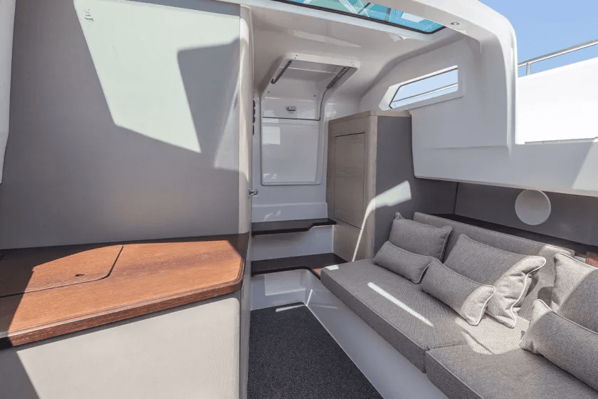 - Hooking points for safety harness and 2 large fender storages on the open aft deck and battery / electrical compartment underneath