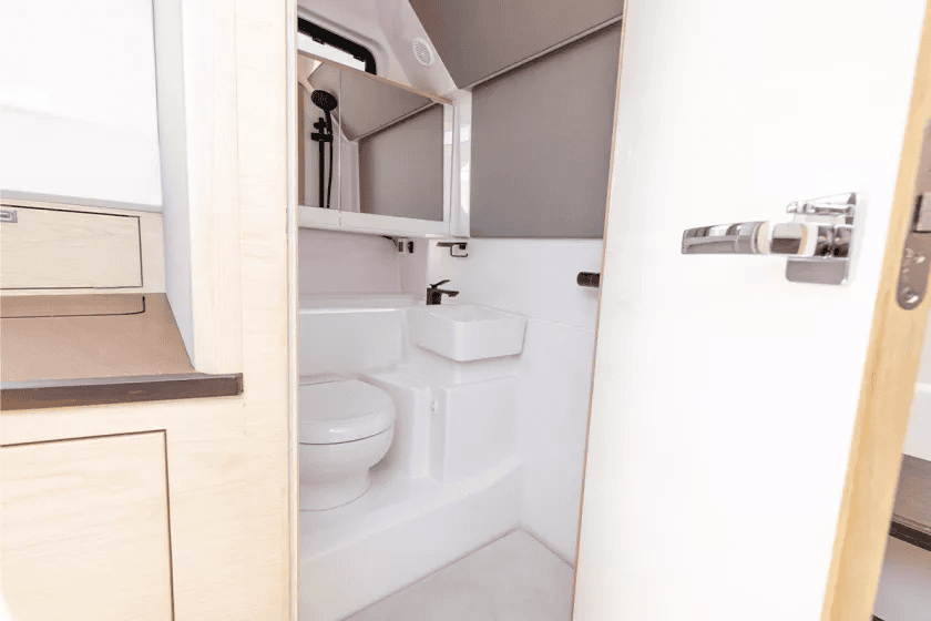 - Sink and faucet, wardrobe, recessed led roof lights, reading lights and ambient lighting in roof and on floor