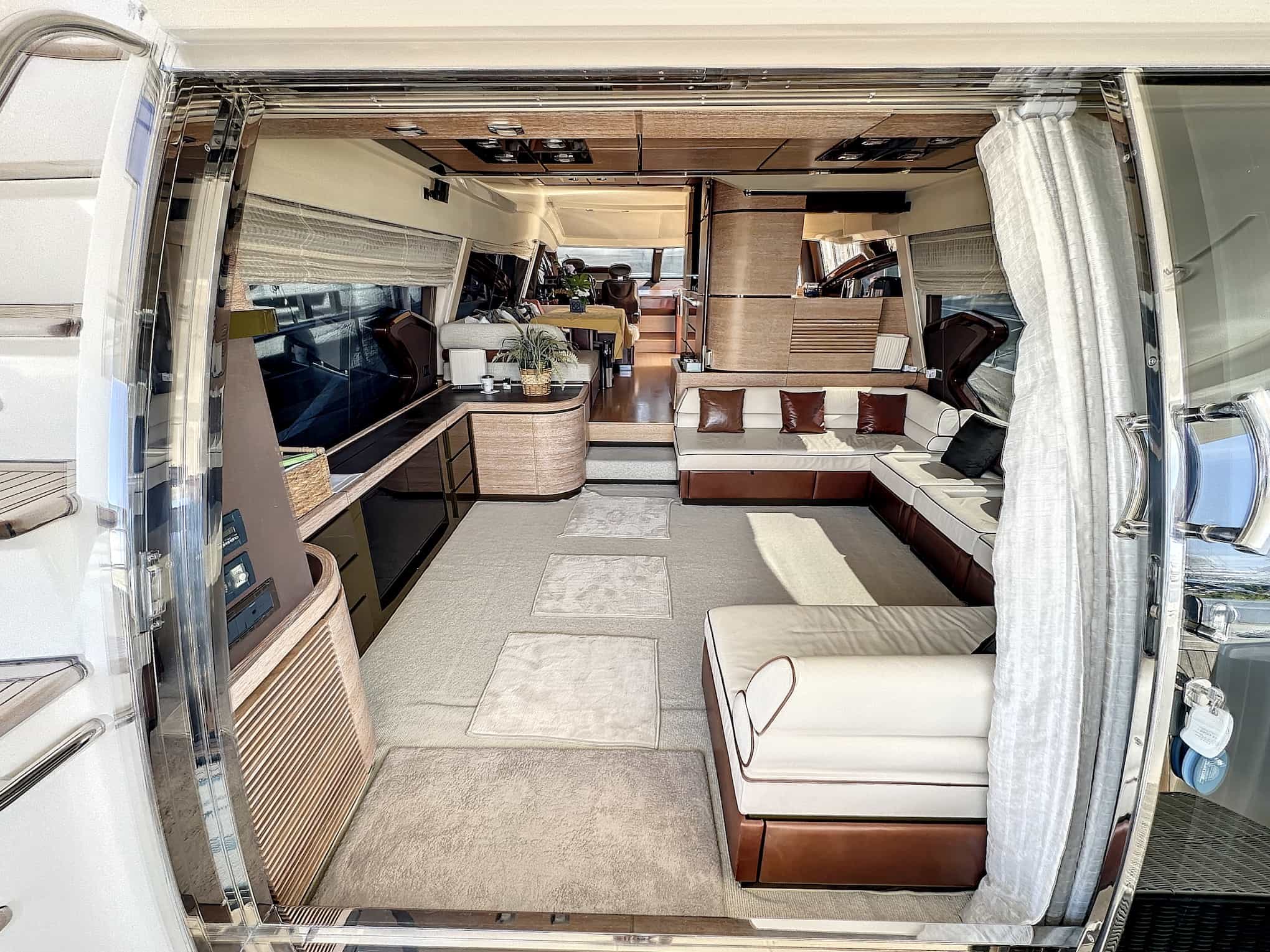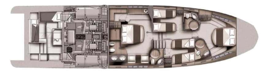 She is powered by 2 x 1360 hp MAN V12 engines with 750 hours to date, giving it a maximum speed of 33 knots, while comfortably cruising at 27. Featuring accommodation for 8 guests in 4 spacious cabins, Azimut 70 ‘KSI FREEDOM’ boasts extensive specifications with numerous additional extras.