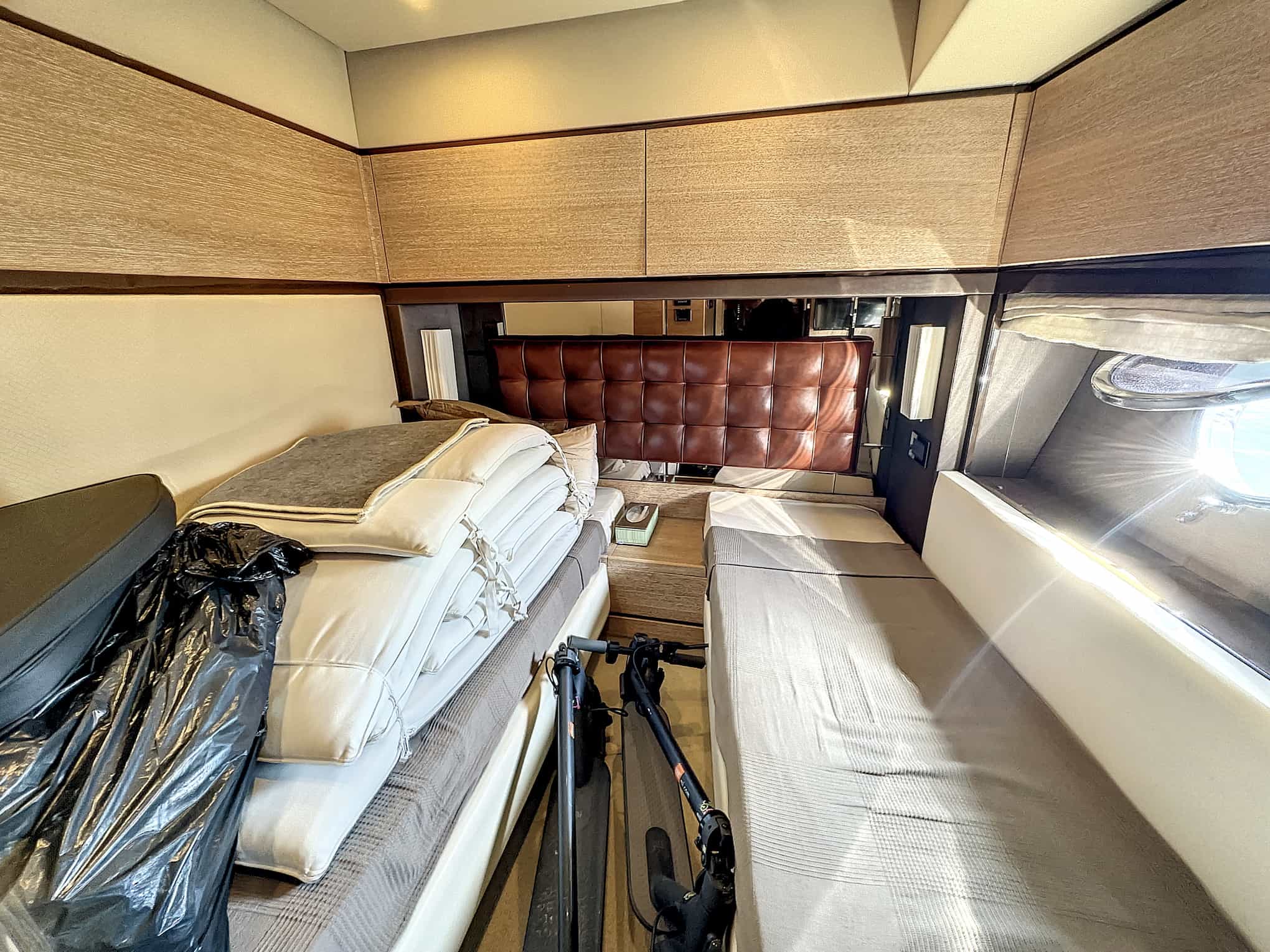 VIP cabin: 32′ Magnavox 1080 Flat screen TV with Apple TV and ACR back up