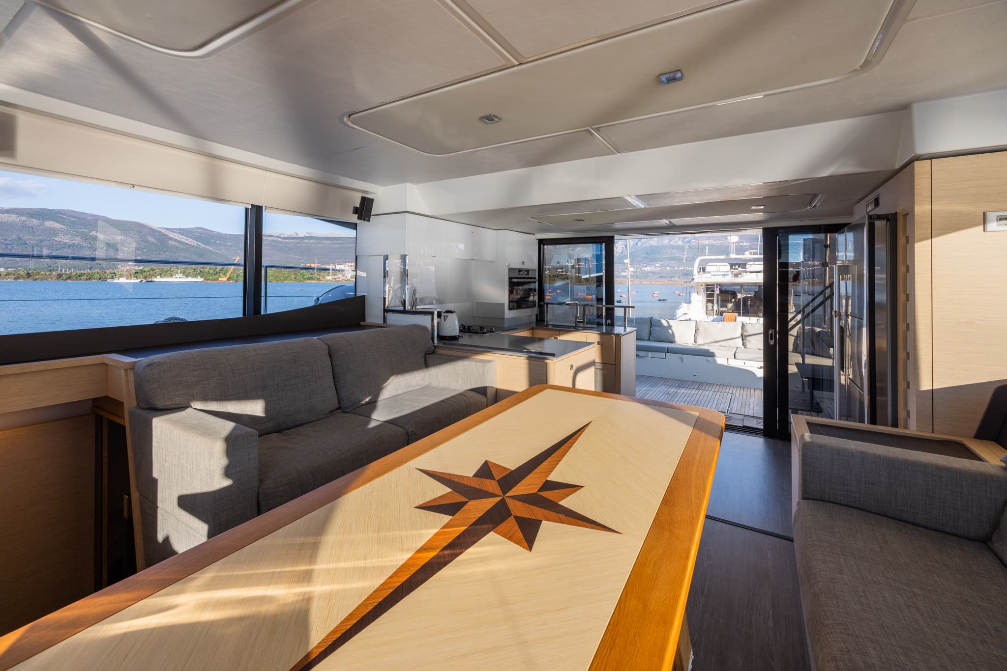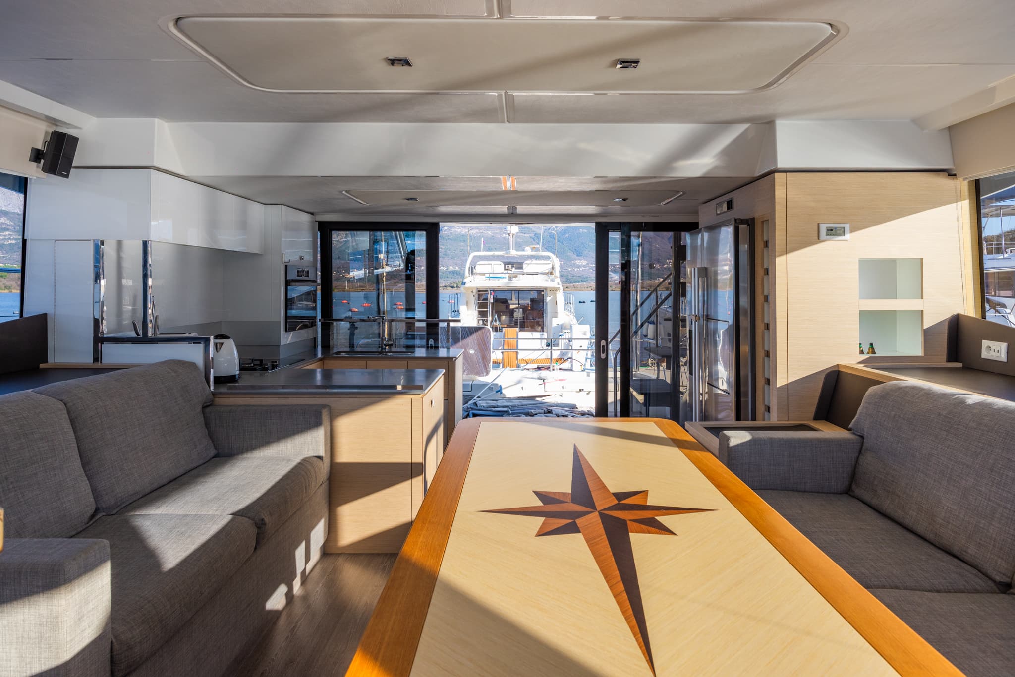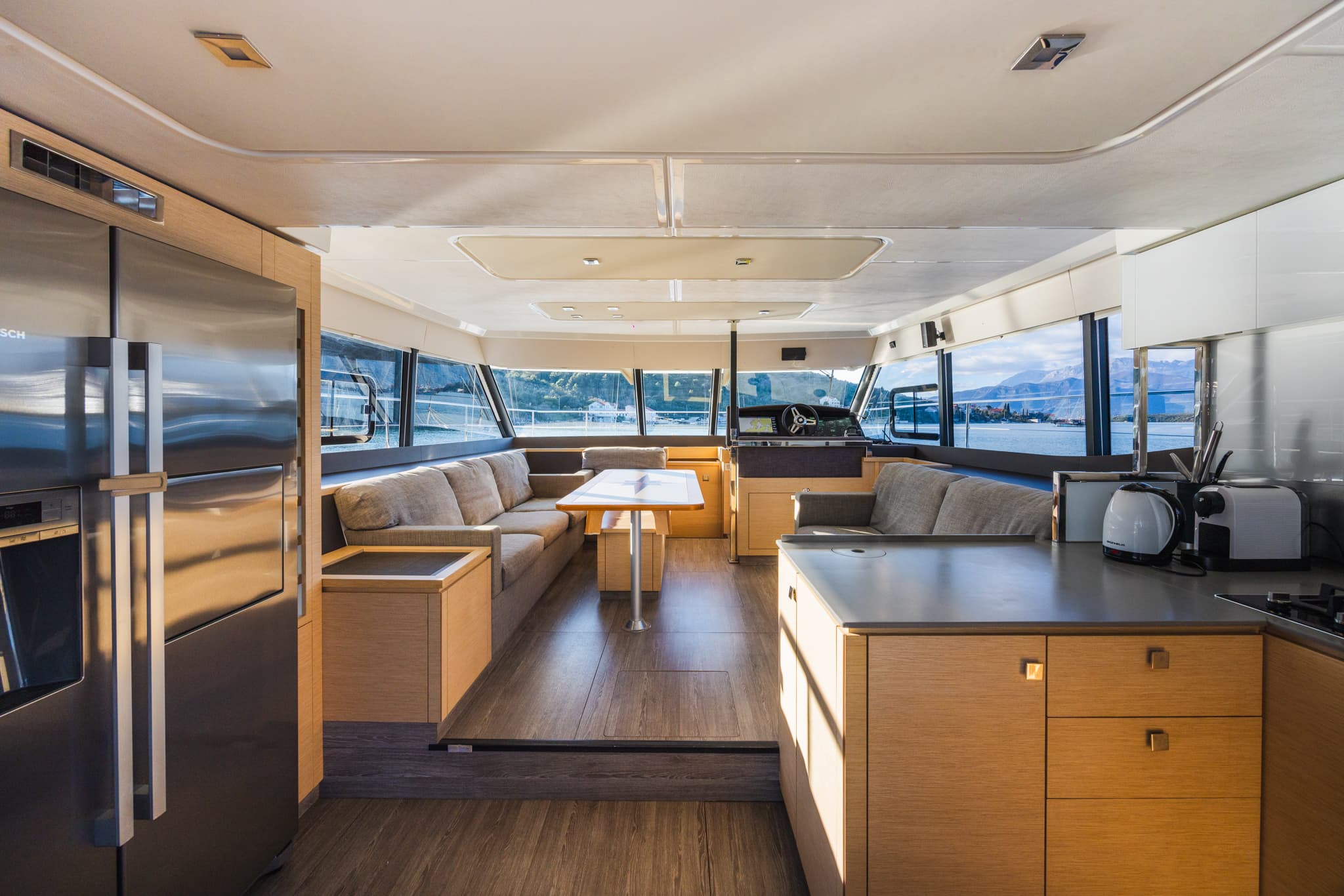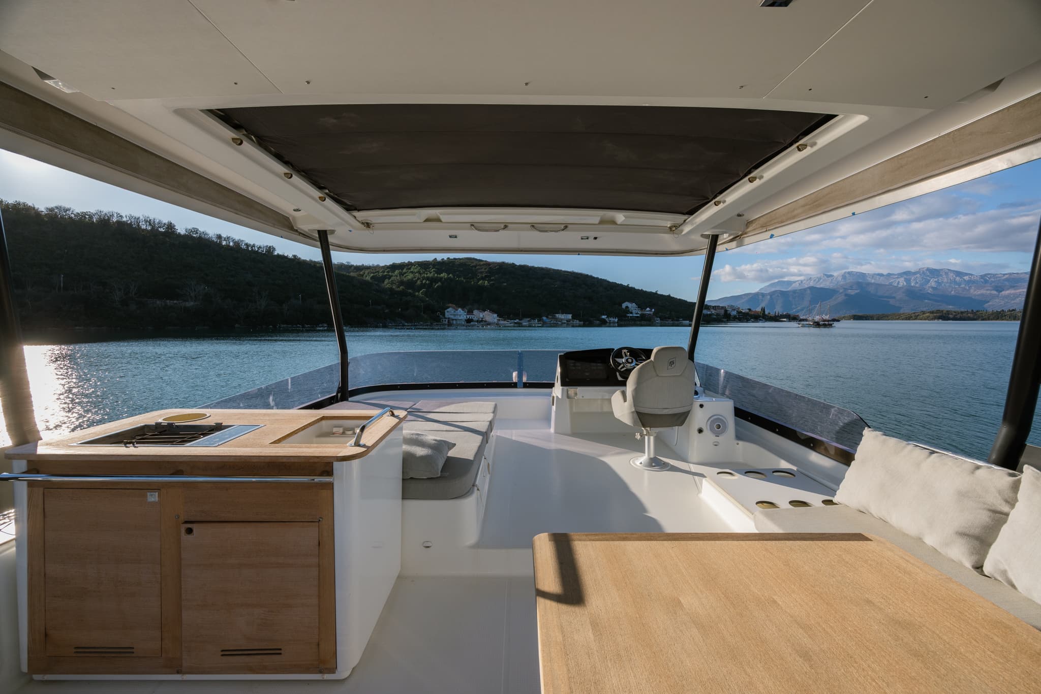 Its hulls have been engineered to provide excellent seakeeping and stability regardless of speed, for exceptional comfort at anchor and underway. Even at a maximum speed of 25 knots, the yacht behaves elegantly and confidently, settles well, and on calm water, all maneuvers are smooth and calm. The natural stationary stability of the MY 44 is much higher than that of other catamarans, not to mention monohull motor yachts.