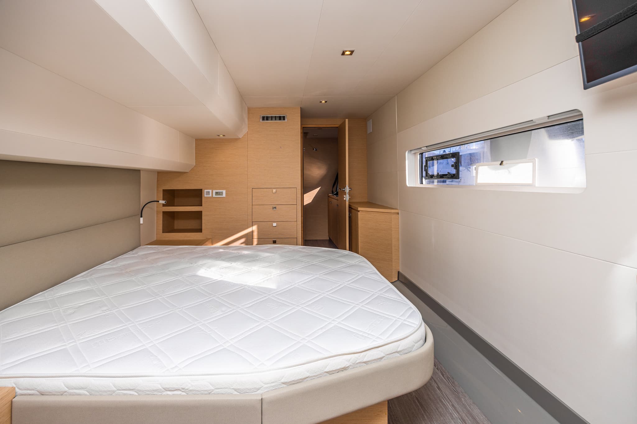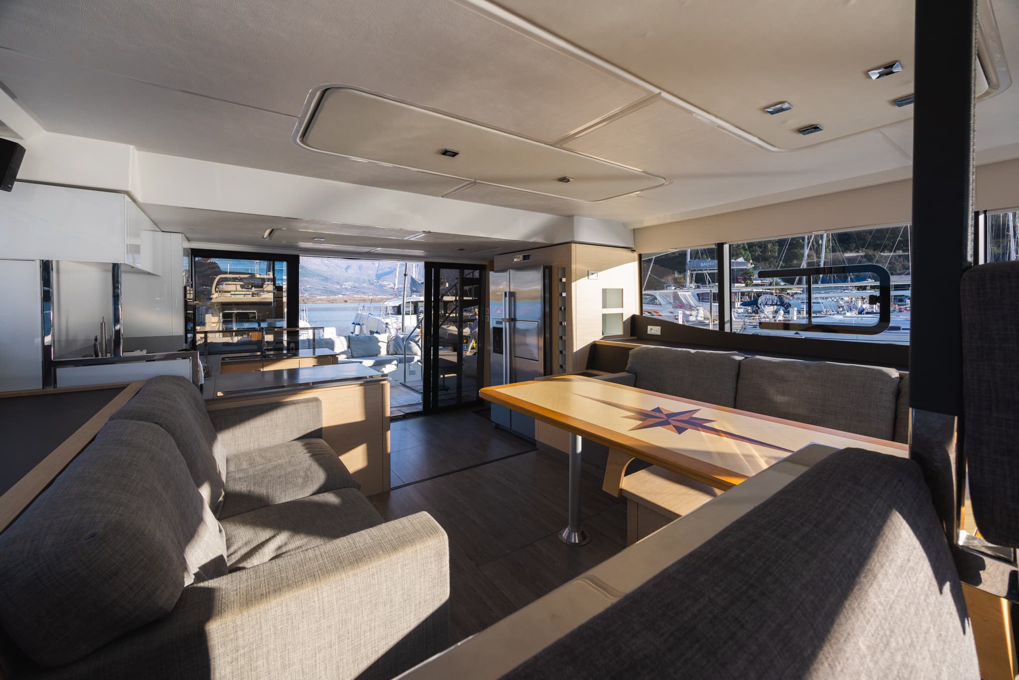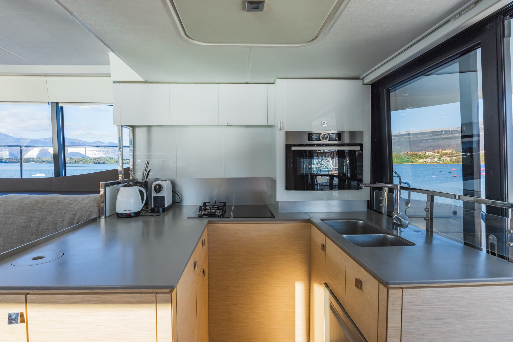 Its hulls have been engineered to provide excellent seakeeping and stability regardless of speed, for exceptional comfort at anchor and underway. Even at a maximum speed of 25 knots, the yacht behaves elegantly and confidently, settles well, and on calm water, all maneuvers are smooth and calm. The natural stationary stability of the MY 44 is much higher than that of other catamarans, not to mention monohull motor yachts.