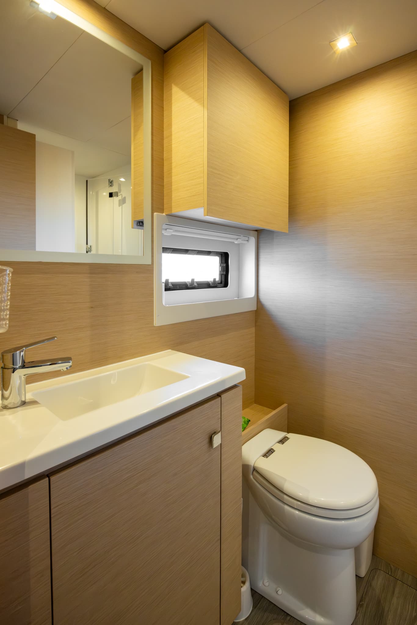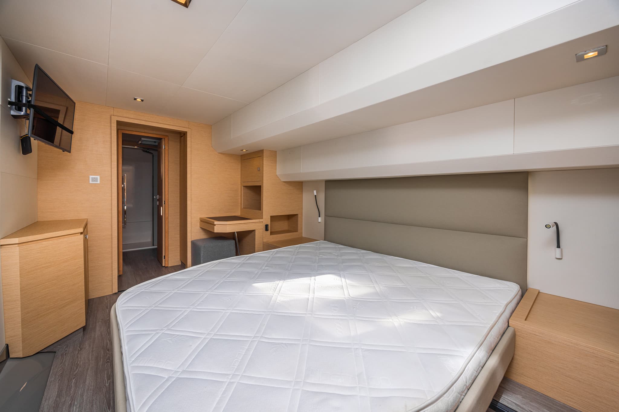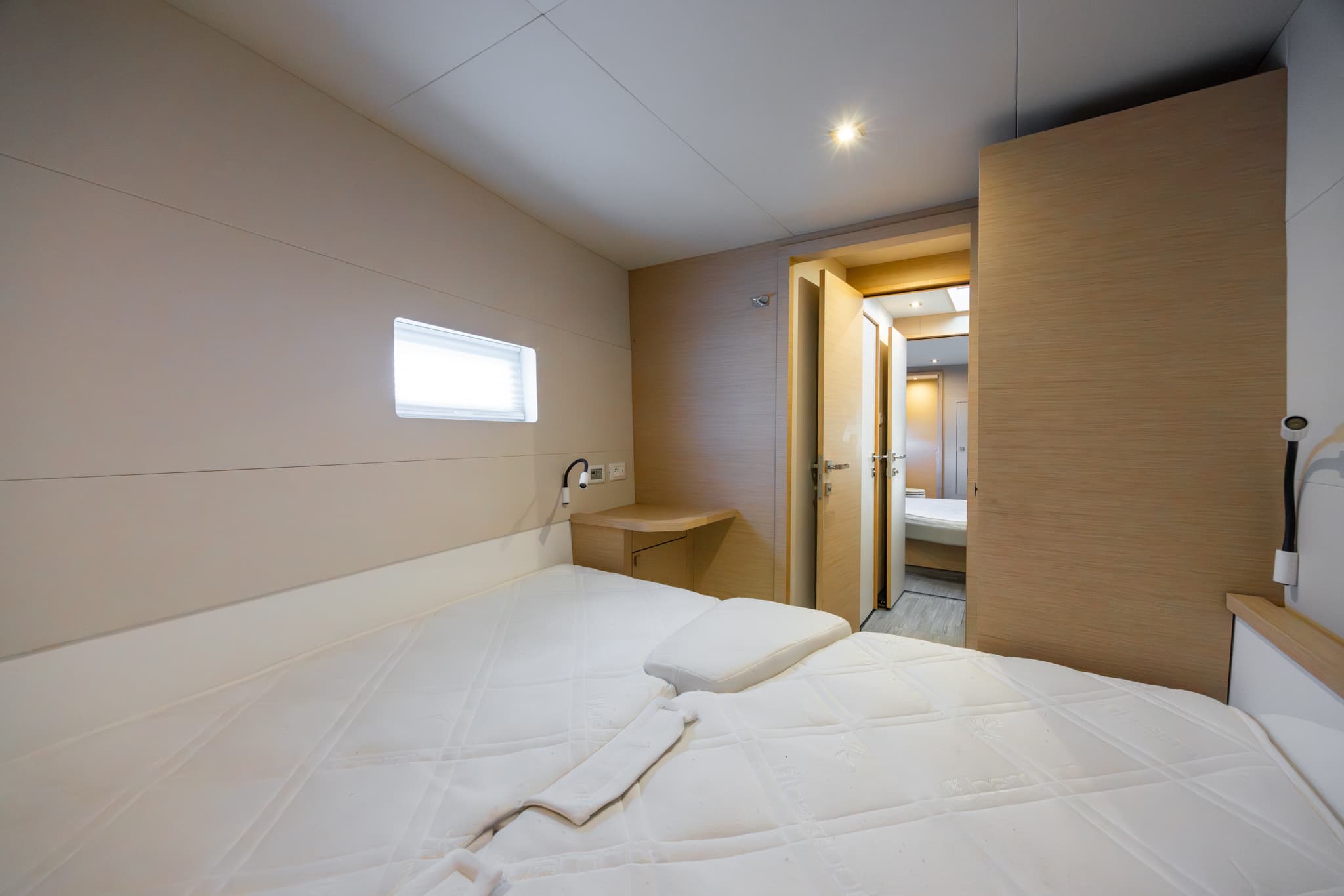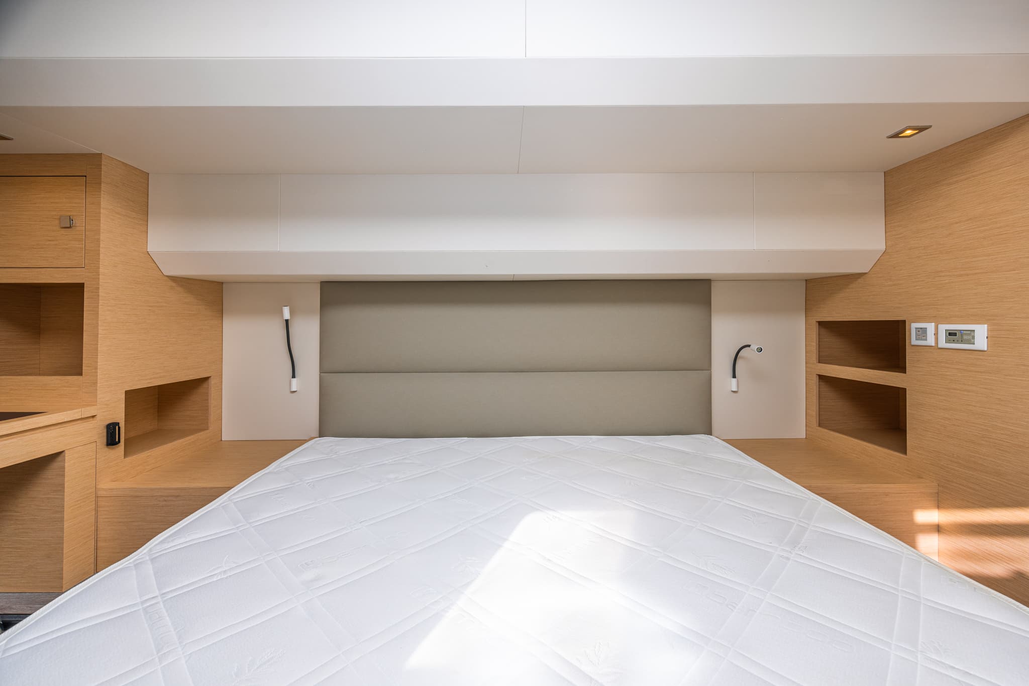 Its hulls have been engineered to provide excellent seakeeping and stability regardless of speed, for exceptional comfort at anchor and underway. Even at a maximum speed of 25 knots, the yacht behaves elegantly and confidently, settles well, and on calm water, all maneuvers are smooth and calm. The natural stationary stability of the MY 44 is much higher than that of other catamarans, not to mention monohull motor yachts.