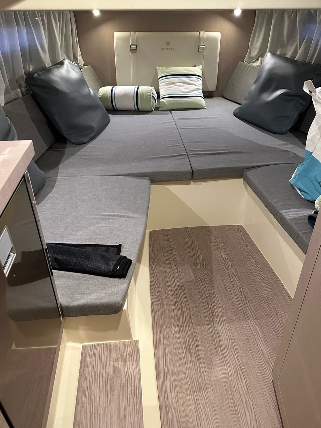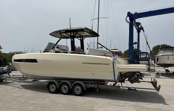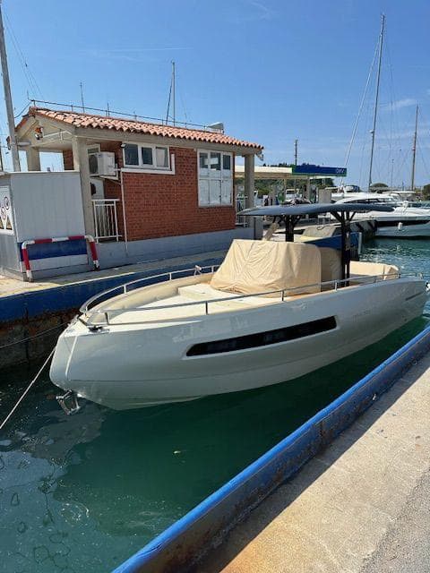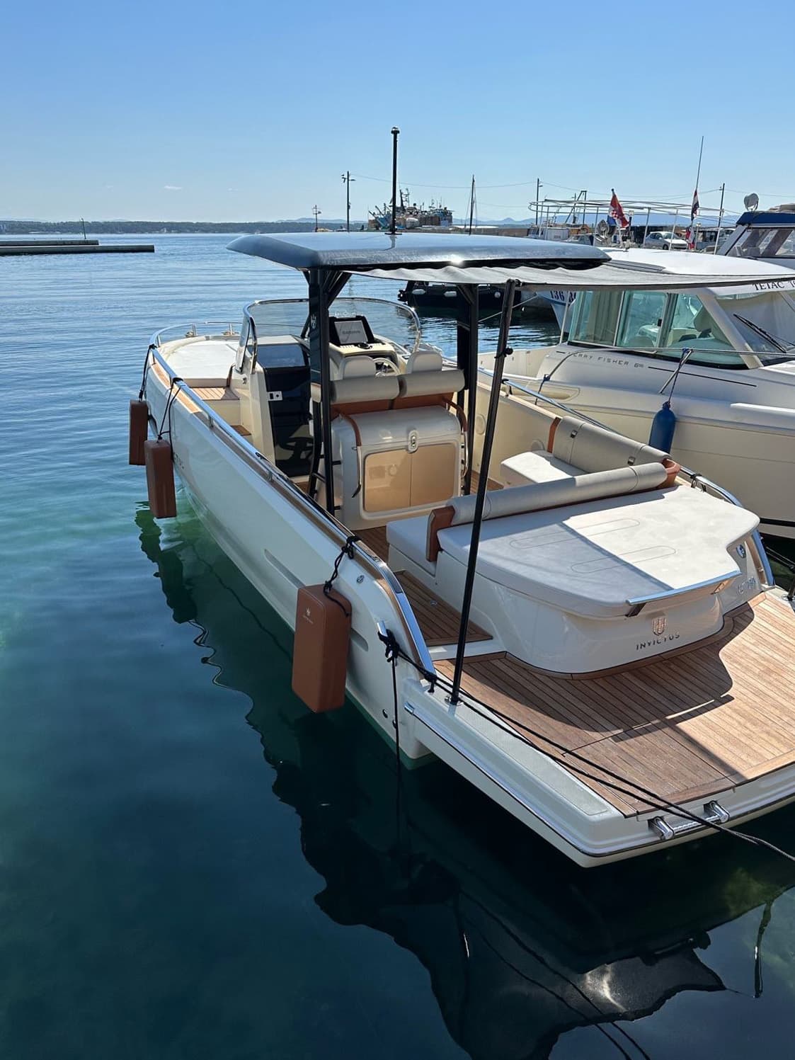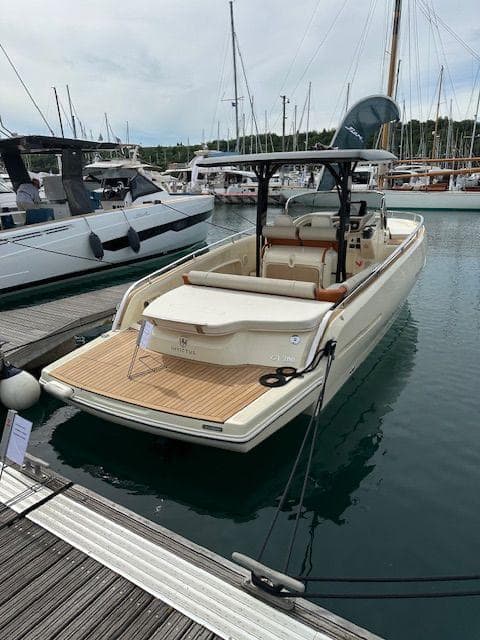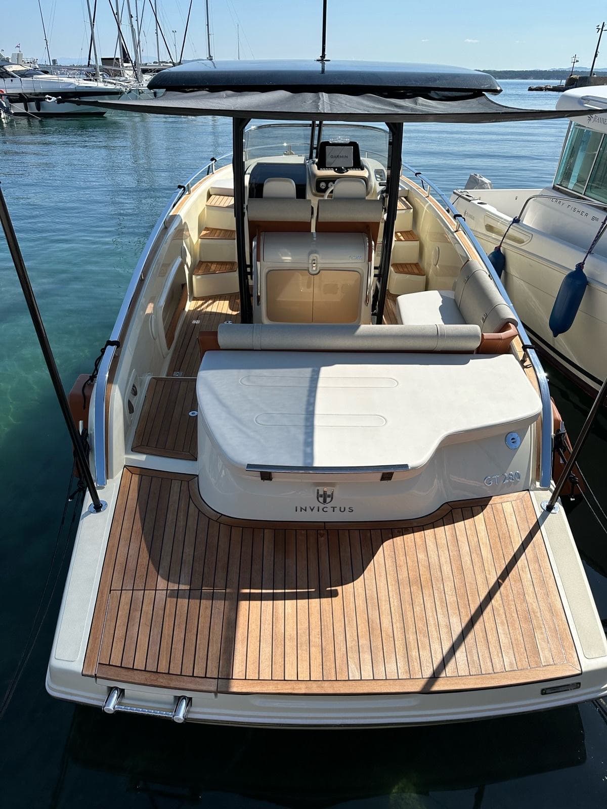 The Invictus GT 280 boasts a distinctive half-reverse bow design by Christian Grande, enhancing stability and comfort. Its sleek profile and attention to detail make it a symbol of luxury, with the color further emphasizing its identity.