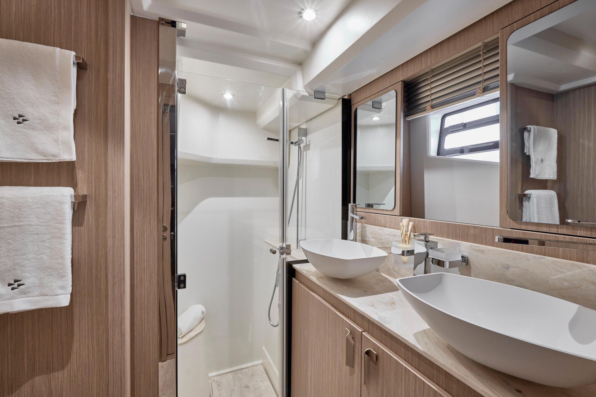 - Panoramic side windows with blinds and opening ports
