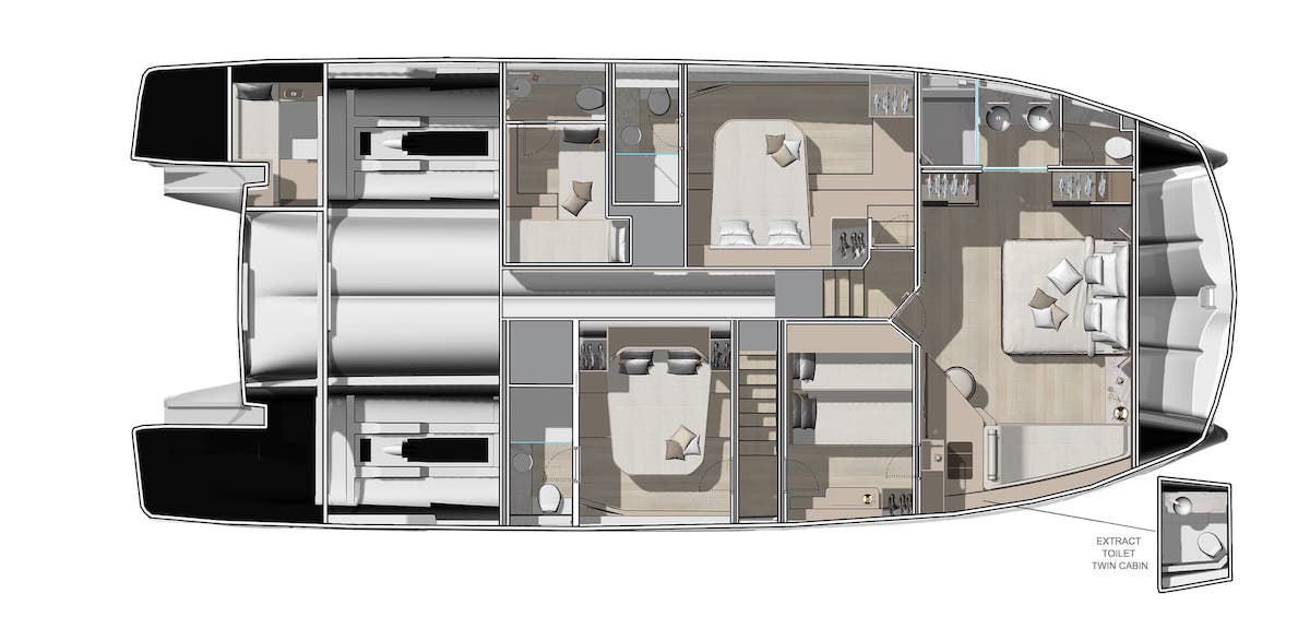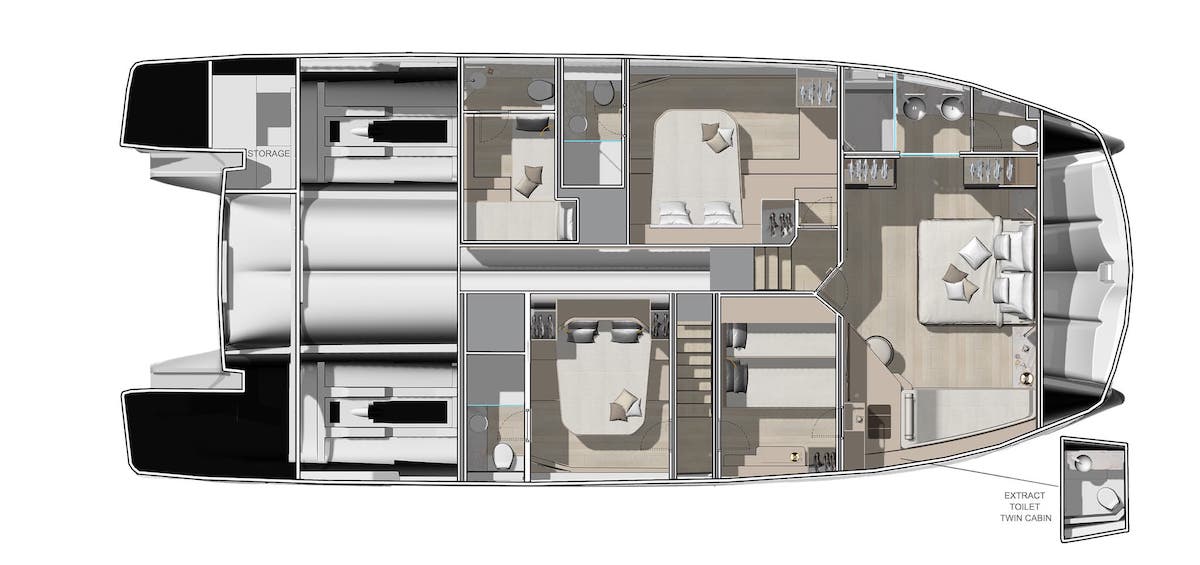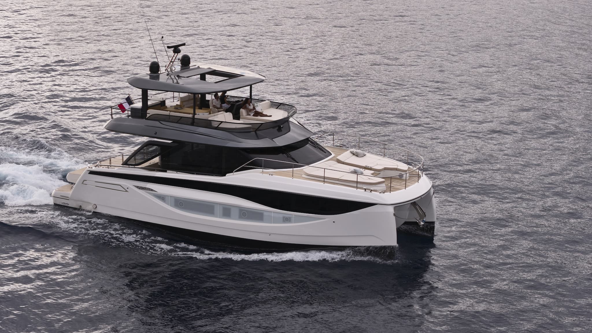 At sea or at anchor, the M7 offers a yet unimagined quality of life on board for her category. Her multihull configuration offers space and an exceptional level of fit and finish, all in perfect harmony with nature.