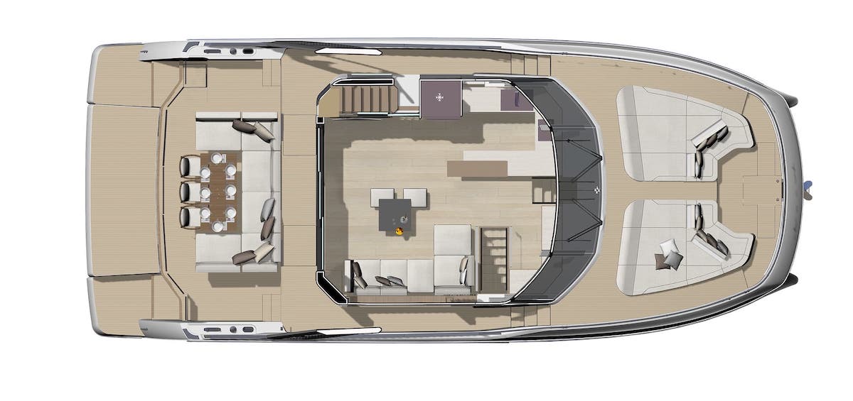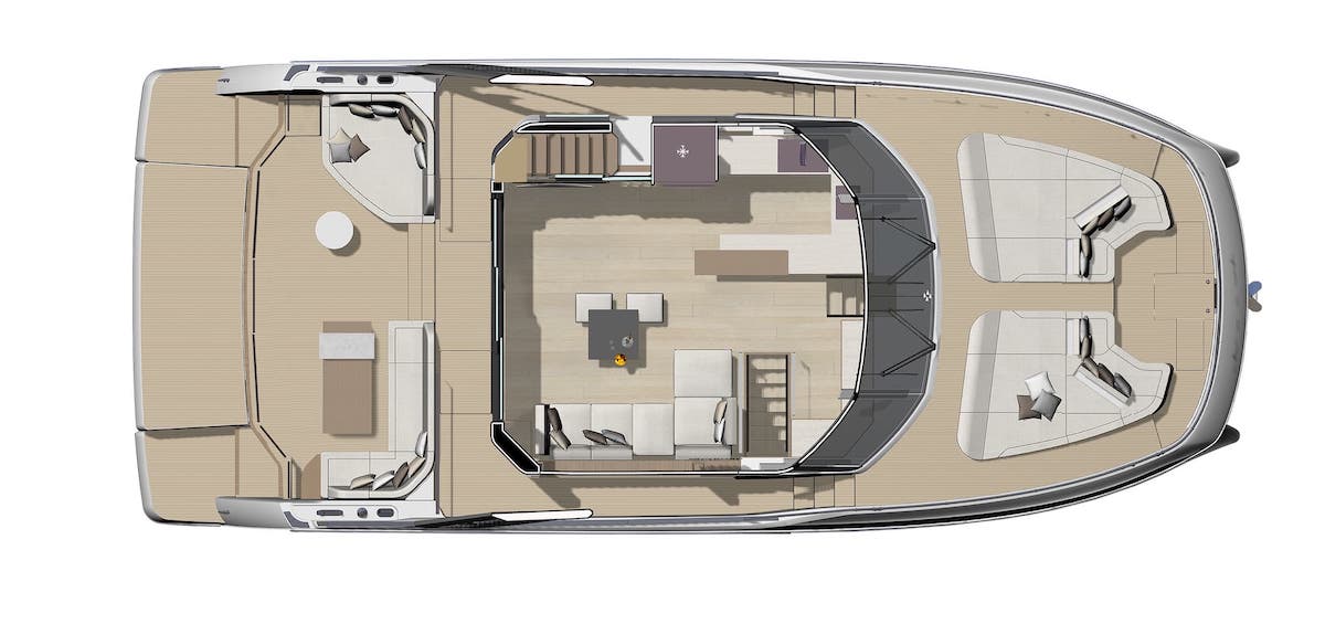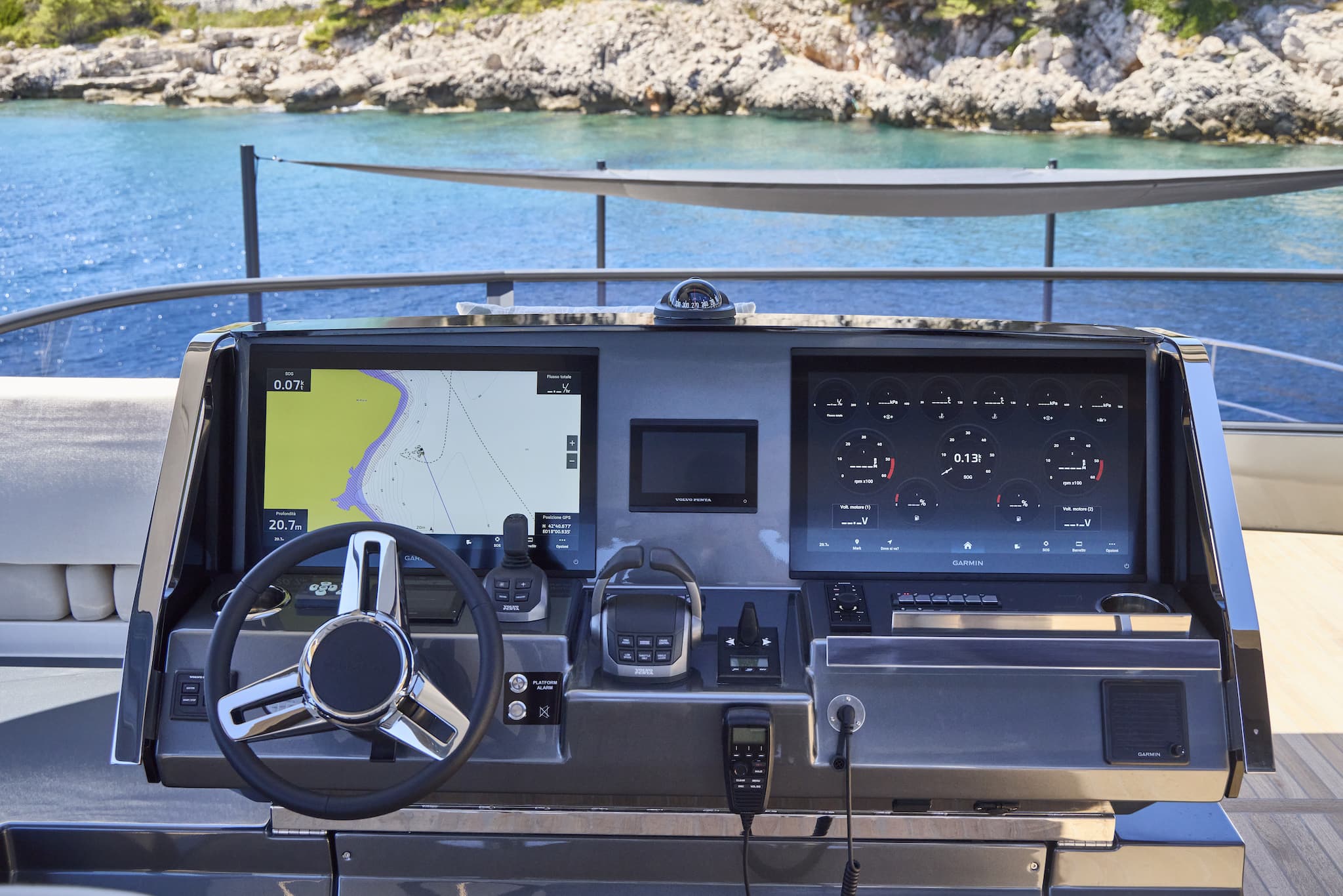 - Solar panels on H-Top and Flybridge surfaces (16m² 2.6KW)