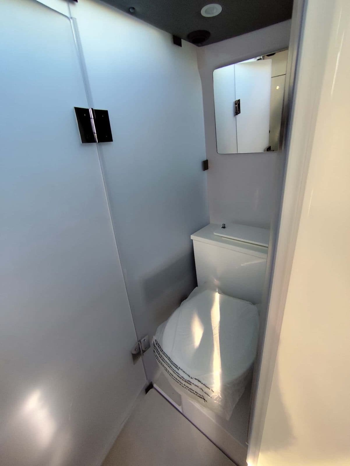 - Встроенный электрический унитаз под L-образным диваном с 70-литровым септиком и сливом в палубу/корпус