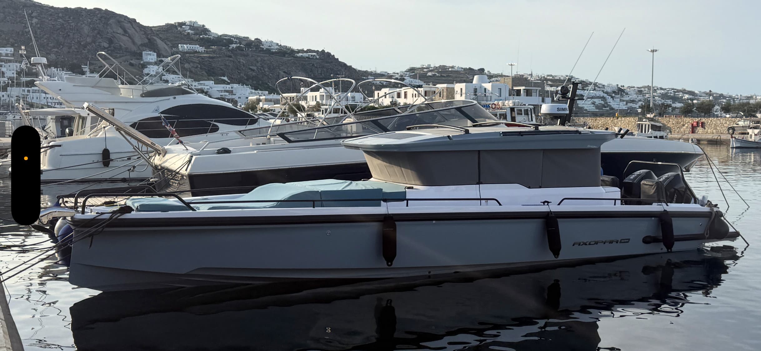 - Хромированный логотип Axopar 3D с обеих сторон корпуса