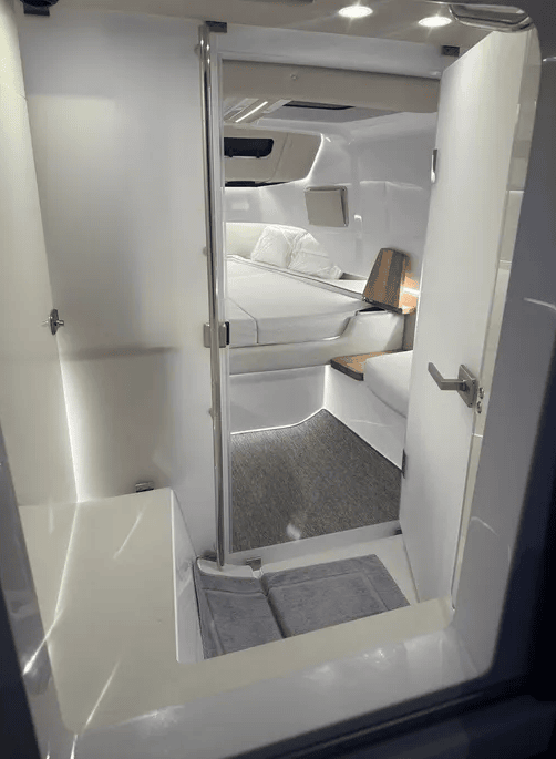 - Сдвижная дверь к передней каюте с темным серым мягким покрытием