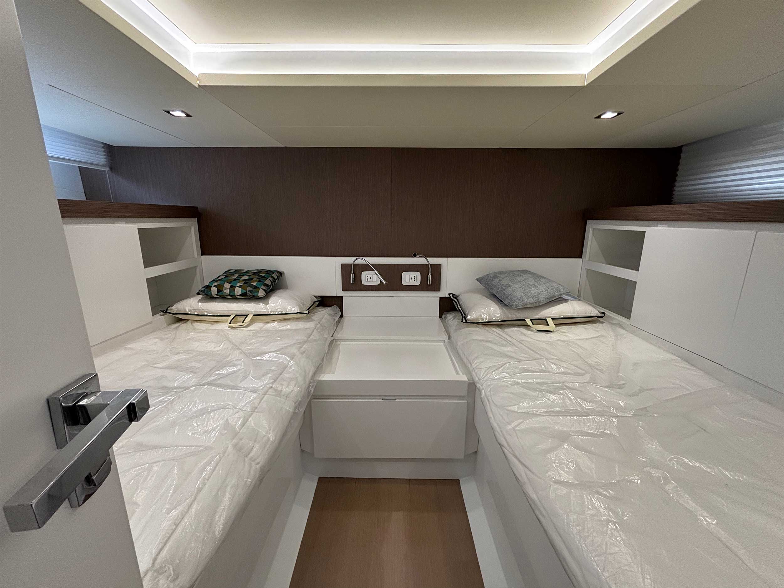 Оснащённая двумя двигателями Volvo Penta D6-440 IPS-600 с наработкой всего 360 моточасов, яхта сочетает отличную манёвренность с высокой надёжностью. Просторная планировка включает переднюю двуспальную каюту, кормовую каюту с двумя отдельными кроватями и полностью оборудованную ванную комнату с душем — идеальное решение для семейного отдыха или путешествий вдвоём.