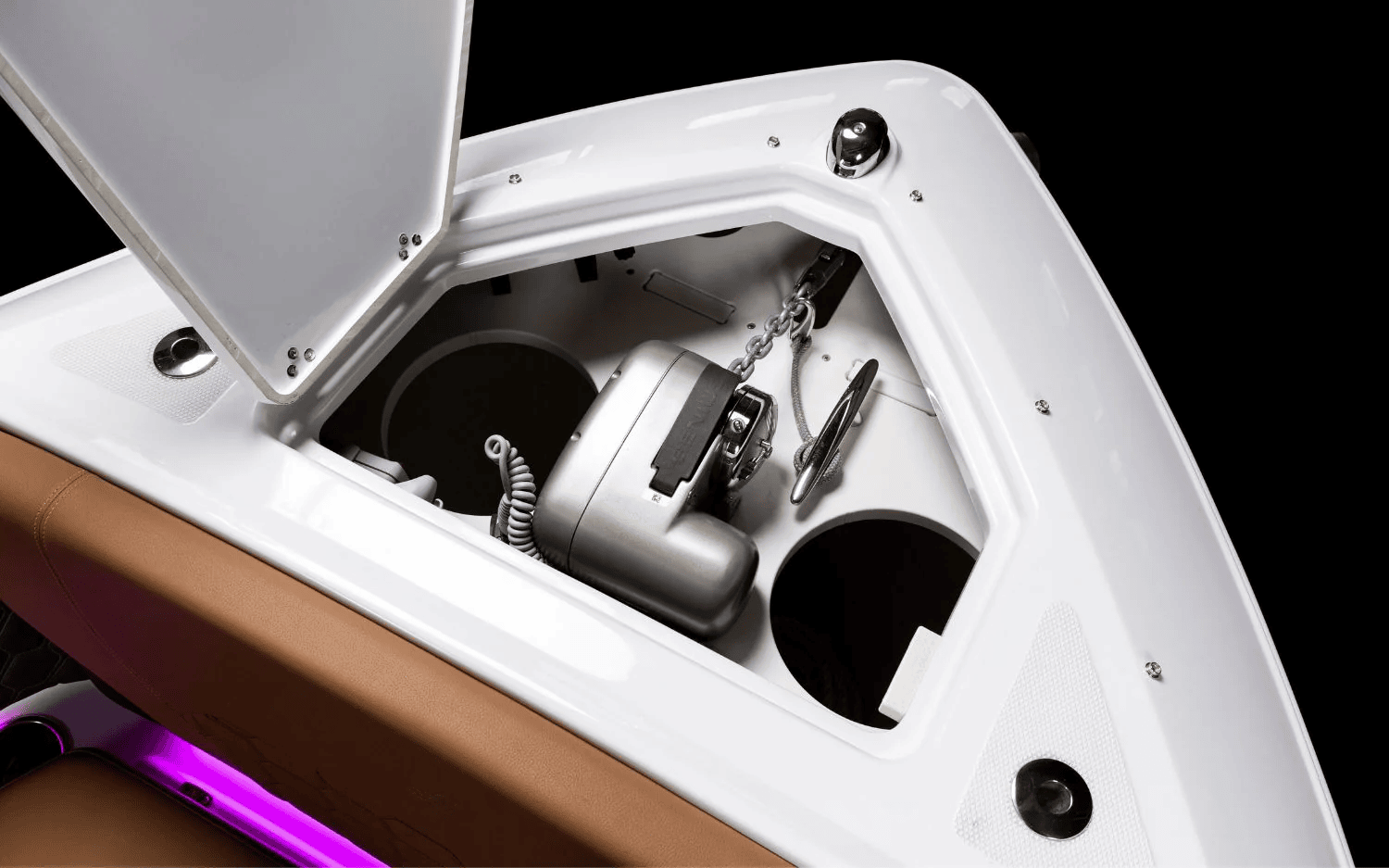 - Отсек для якоря, дверца из стеклопластика (RTM) с фрикционными петлями, нержавеющая сталь