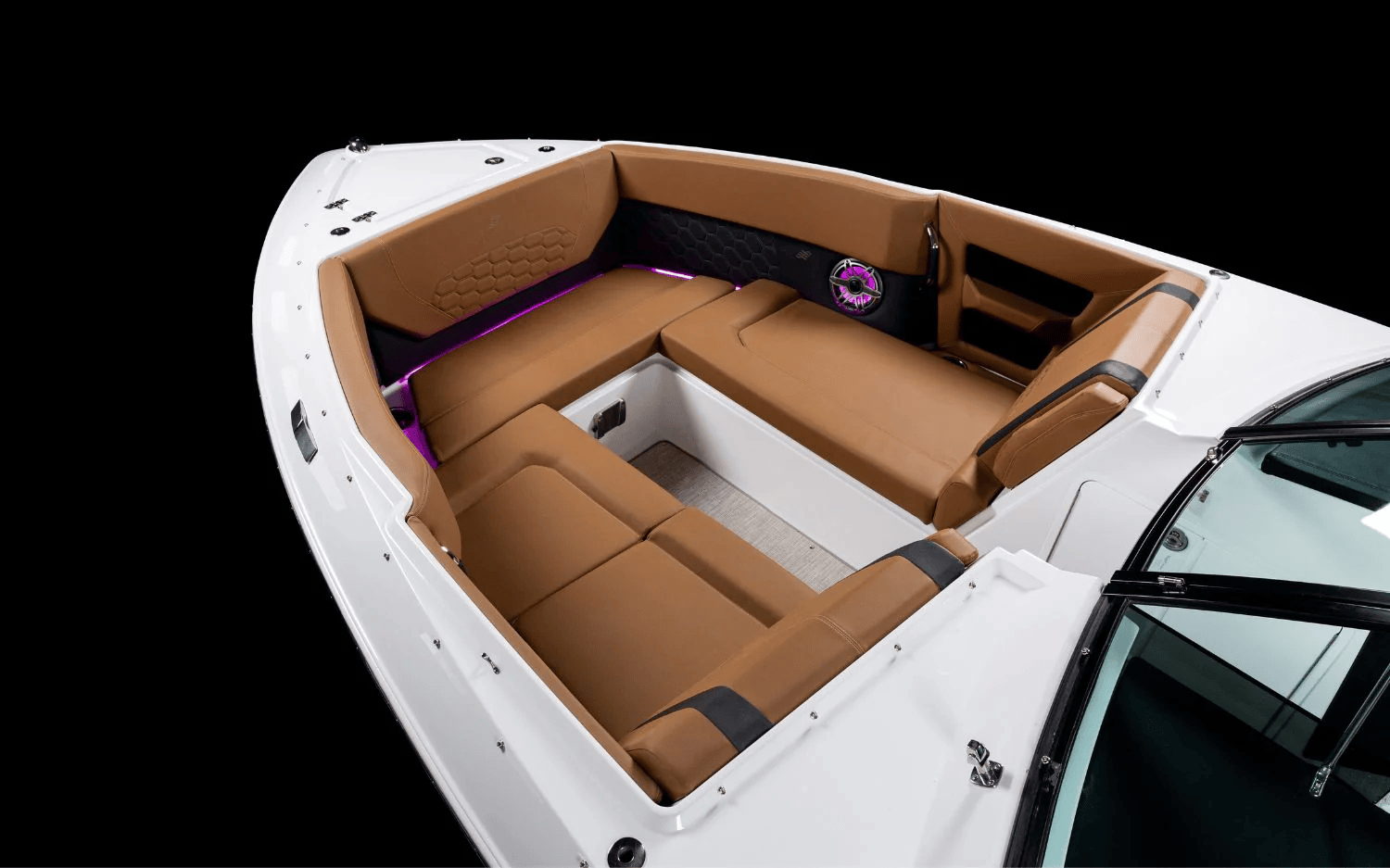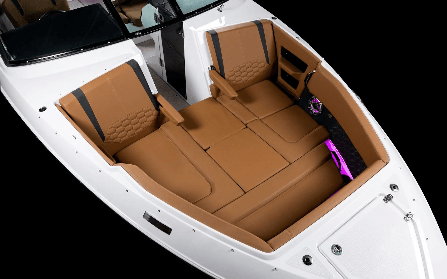 - Сиденья в носовой части с откидной спинкой и подлокотниками
