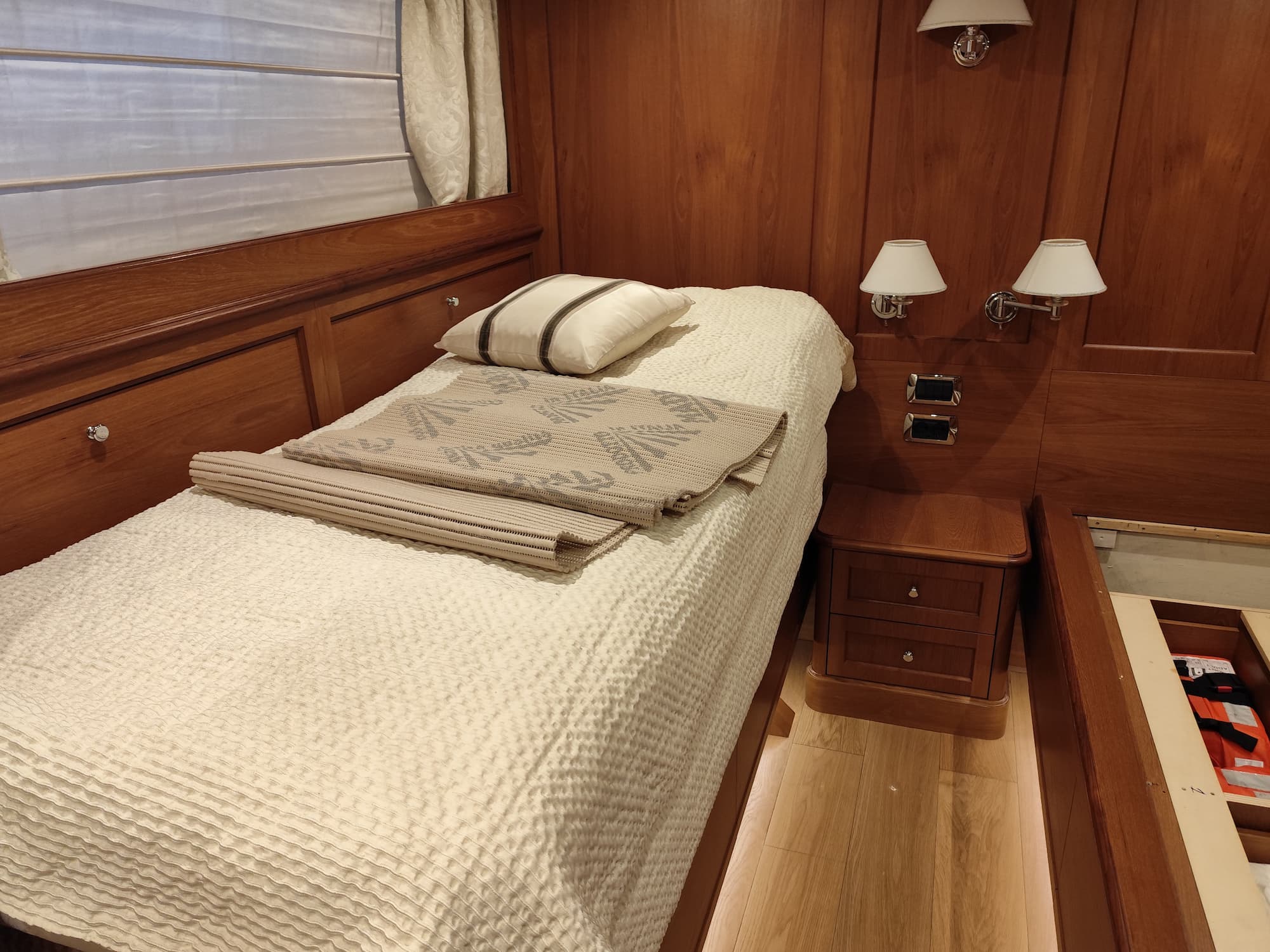Hessen 83 имеет планировку с 4 каютами и может комфортно разместить до 8 человек. Она удобно оснащена 4 туалетами, платформой для купания, тиковой палубой, микроволновой печью, стиральной и сушильной машинами и многими другими опциями. Управление Hessen 83 позволяет вам самим прокладывать курс для приключений. Эта яхта — идеальный способ провести незабываемый отпуск!