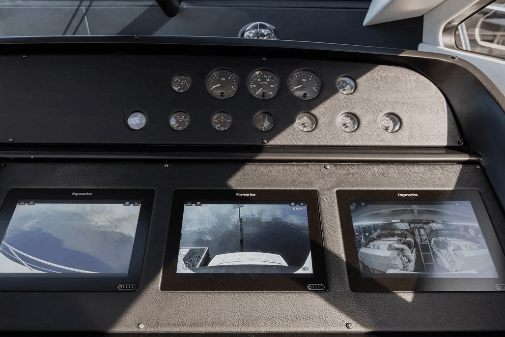 - 3 x 12-дюймовых картплоттера Raymarine Axiom + пульт дистанционного управления на кресле пилота