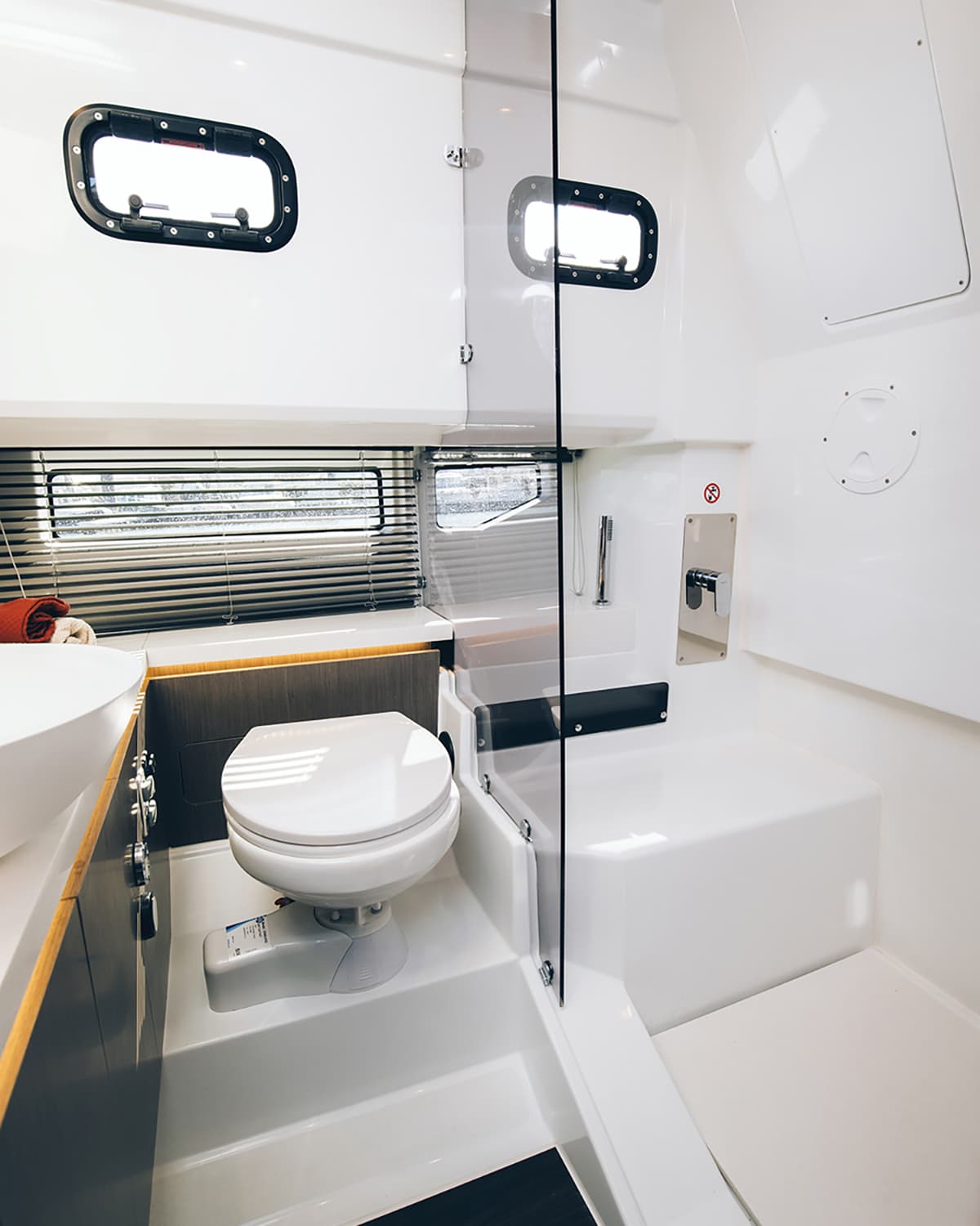 - Wheelhouse/Bow cabin upholstery – Dolce Ivory/Mocca (Leatherette)